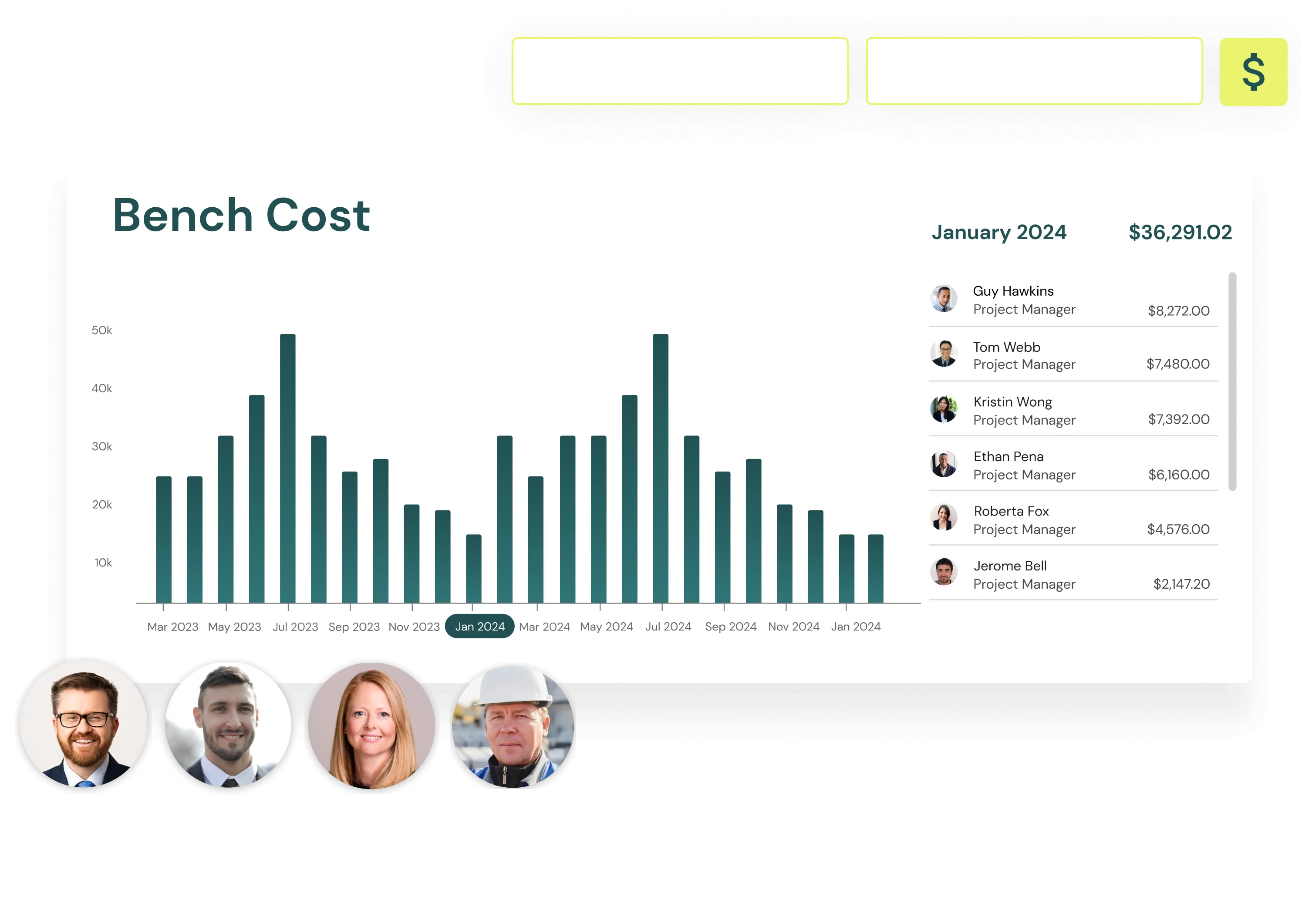 The Bench Cost module shows you the total cost of the people who are under-utilized or haven’t been assigned jobs. With easy-to-understand visuals, you have immediate insight into how much money you could be leaving on the bench.